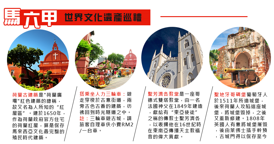 馬六甲世界文化遺產巡禮 (荷蘭紅屋、鐘樓、葡萄牙廣場、古城門+聖地牙哥古堡、聖保羅教堂遺址)